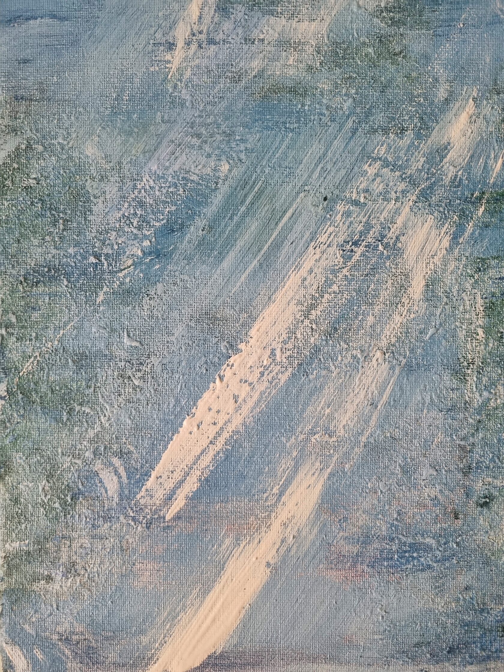 Картина сочетает холодные облачно-снежные оттенки с мягкими теплыми переливами островков, передавая ощущение целенаправленного движения и внутреннего света. Энергичные мазки и многослойная фактура придают полотну глубину и объём, позволяя почувствовать динамику пространства и игру движения в нём. Несмотря на отличие от привычного готического направления, работа сохраняет узнаваемую индивидуальность, демонстрируя смелость эксперимента и тонкое чувство колористики. Это произведение станет для вас выразительным акцентом интерьера, оно привнесёт атмосферу утончённой гармонии в любое пространство.